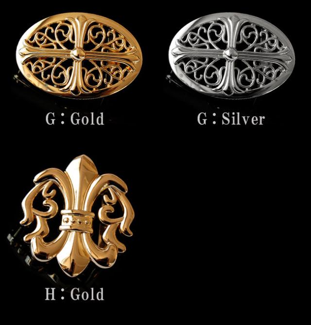 スカル、百合の紋章、クロス、アラベスクといった人気モチーフを使用したデザインバックルです。ゴールド、シルバーメッキを施してあり、アクセントになります。お手持ちのベルトを簡単カスタマイズ!バックルを付け替えるだけで表情がガラっと変わります。スタイルによってバックルを変えたり、自分だけの組み合わせを見つけてオリジナルバックルベルトを身につけてください。