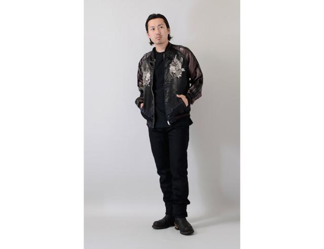 | SATORI Waterfall & Carp Embroidered Reversible Souvenir Jacket SATORI 滝 & 鯉 刺繍 リバーシブル スーベニアジャケット 飛沫を上げる滝を昇っていく2匹の鯉を背中に落とし込んだダイナミックな図案で、 フロント両胸には背中の鯉を1匹ずつ刺繍がされ、左右で違う柄になってます。 色使いもモノトーンでまとめ、鯉の目が赤で刺繍されておりいいアクセントになっています。 リバーシブル面は無地のマッドなジャケットとなっておりますので コーディネートの幅が広がる一品です。 | ||||||||||||||||||||||||||||||
