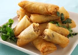 豚肉、タケノコ、シイタケ、黄ニラなどを千切りにして炒めて醤油 などで調味したものを 小麦粉で作った皮で棒状に包み、食用油で揚げたものです