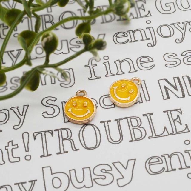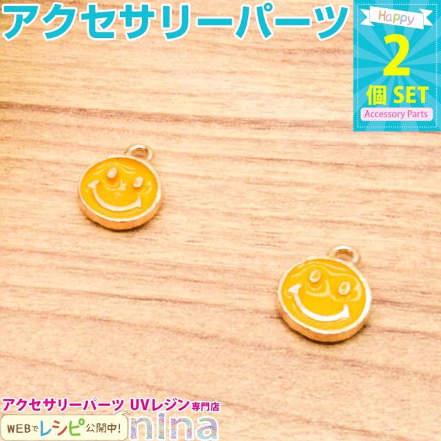 ニコちゃんチャーム イエロー 2個セット | ニコちゃんチャームが可愛くアレンジを! / ゴールド ニコちゃん イエロー 黄色 チャーム ハンドメイド アクセサリー 手芸 パーツ イヤホンジャック バックチャーム ゴールド 手作り UVレジン レジン