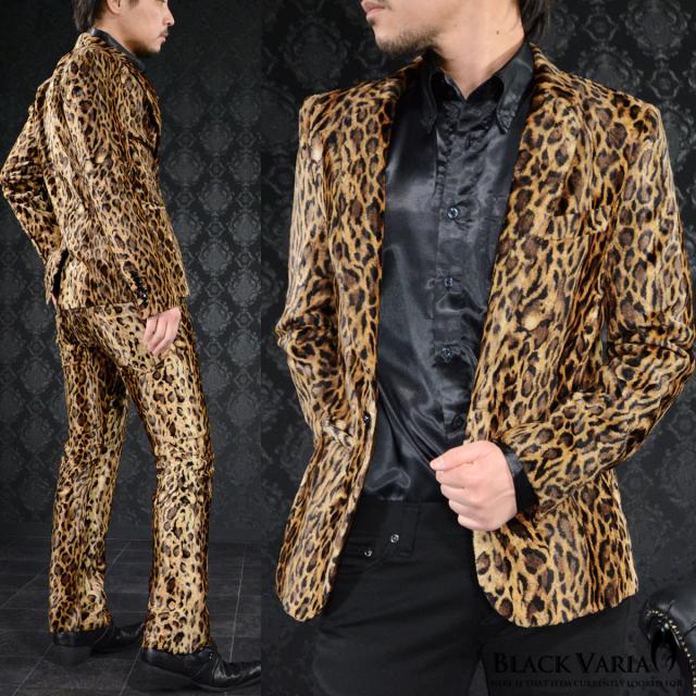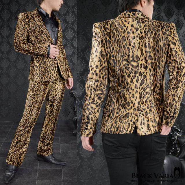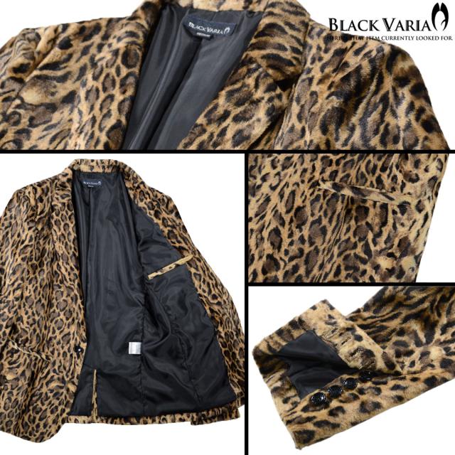 テーラードジャケット ショートファー フェイクファー アニマル柄 メンズ 1釦 アウター 日本製 ファージャケット(ブラウン茶ヒョウ豹) 931730
