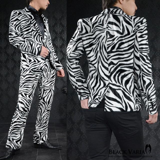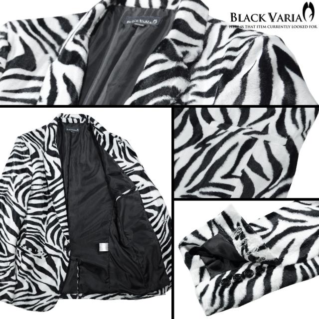 テーラードジャケット ショートファー フェイクファー アニマル柄 メンズ 1釦 アウター 日本製 ファージャケット(ホワイト白ブラック黒ゼブラ) 931730