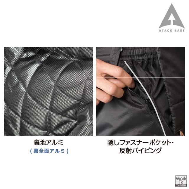 アタックベース 防寒パンツ 中綿 裏アルミ 暖かい 保温 軽い 秋冬 冬用 寒さ対策 作業ズボン 防寒着 作業服 作業着 農作業 外作業 通勤 アウトドア 登山 キャンプ 釣り バイク メンズ レディース ブラック ネイビー 黒 紺 at-588-2