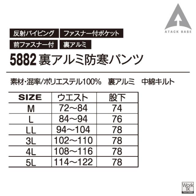 ATACK BASE 5882 裏アルミ防寒パンツ 裏地がアルミ素材で、中綿キルトなので保温性抜群な防寒着!!