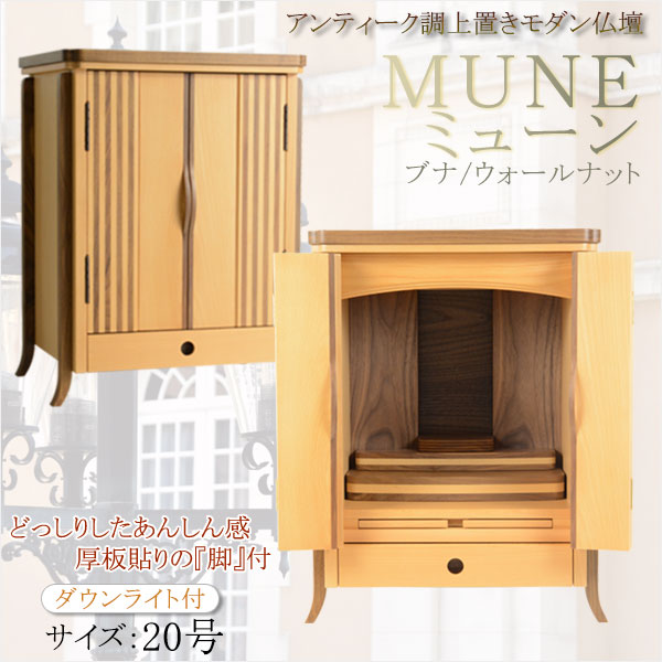 現代調モダン仏壇【美しい曲線脚付き 家具調デザイン:ミューン 20号 ブナ/ウォールナット】上置き小型仏壇・ミニ仏壇 送料無料