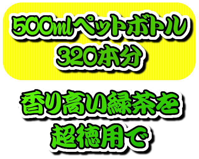 1袋で 500mlペットボトル 320本分程度の緑茶が楽しめます