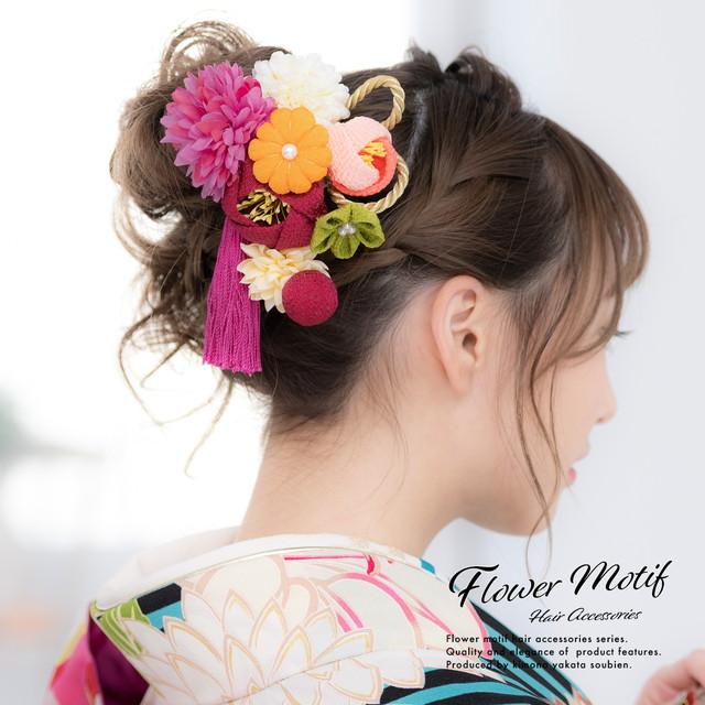 成人式 髪飾り 成人式の髪飾り 2点セット 紫 パープル 椿 桜 菊 ピンポンマム 花 組紐 玉飾り 縮緬 つまみ細工 コサージュ 房飾り コーム Uピン ヘアアクセ 振袖向け 卒業式向け 日本製 和装