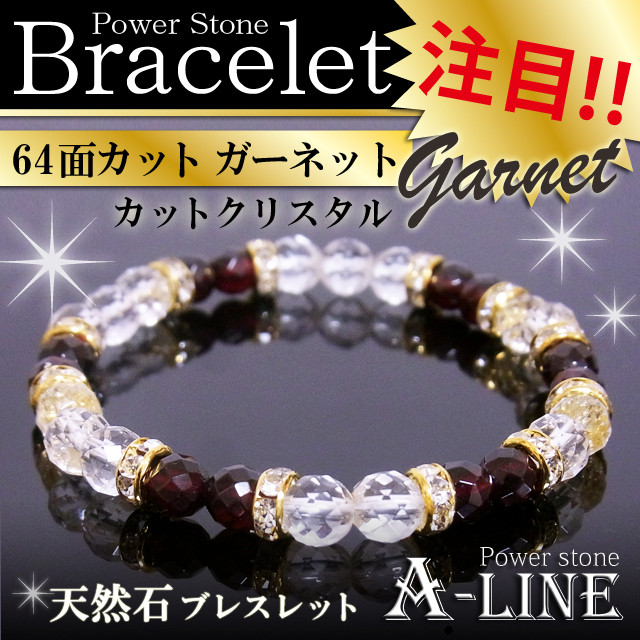 パワーストーン ブレスレット 勝負運に 64面カット・ガーネット&64面カットクリスタル6mm 重ねづけにも PW-3246