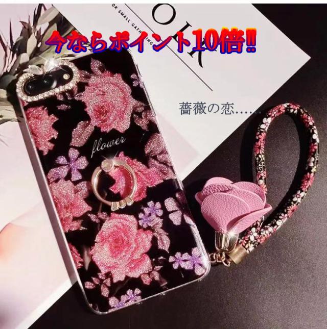 iPhone7 iPhoneX iPhone8 ケース 花模様 iPhone8Plus iPhone7Plus iPhone6 iPhone6Plus ケース 薔薇 薔薇ノ恋 ストラップ付き キラキラ