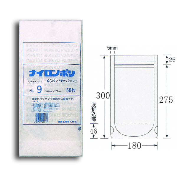 【直送/代引不可】スタンドタイプ ナイロンポリ袋 Cタイプ No.9(180×300) 135μ 冷凍対応 800枚