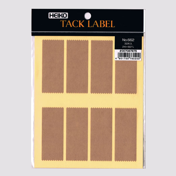 【ゆうパケット対象】タックラベル 未晒 No.662 (24×60) 長方型(ギザ) 1束 (1個口:20点まで)