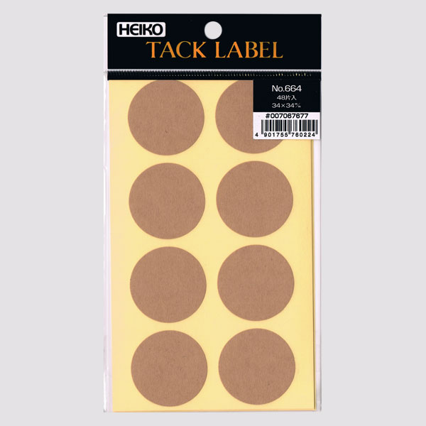 【ゆうパケット対象】タックラベル 未晒 No.664 (直径34) 丸型 1束 (1個口:20点まで)