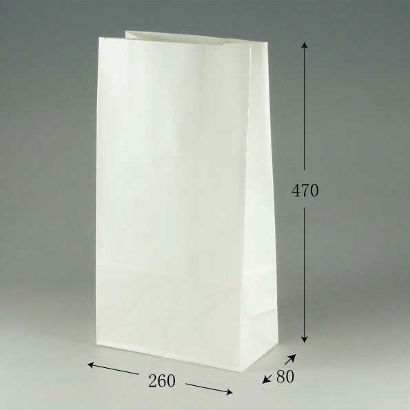 幅:260mm マチ:80mm 長さ:470mm 紙質:片艶80g/m2 1枚重さ:30g