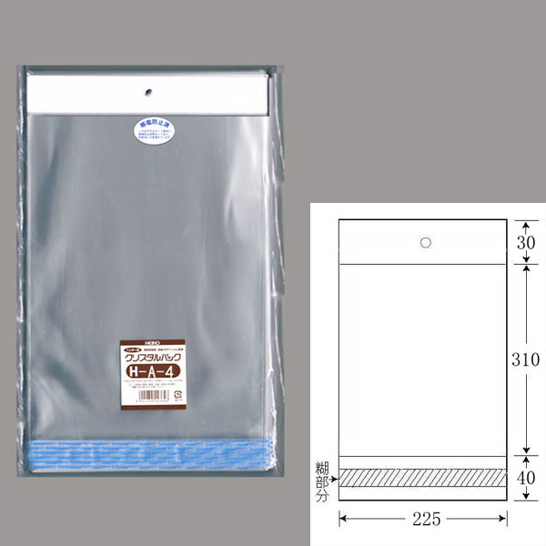 【メール便対象】“ヘッダー付” OPPクリスタルパック H-A4 OPP袋 100枚 (1個口:1点まで)