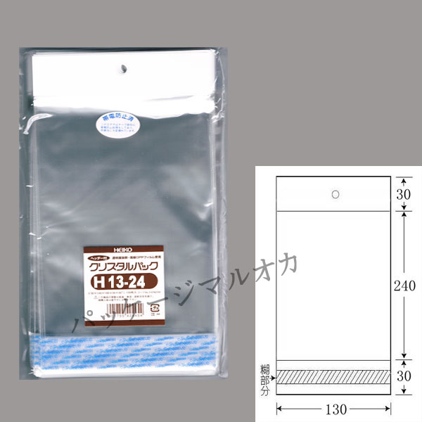 【直送/代引不可】“ヘッダー付” OPPクリスタルパック H13-24 OPP袋 3000枚