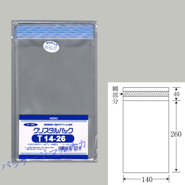 【メール便対象】“テープ付” OPPクリスタルパック T14-26 OPP袋 100枚 (1個口:2点まで)