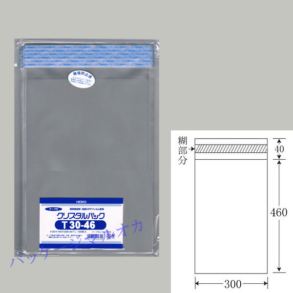 “テープ付” OPPクリスタルパック T30-46 OPP袋 100枚
