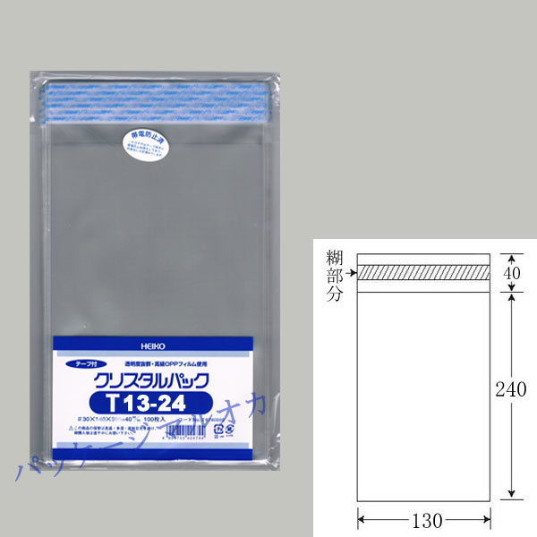 【直送/代引不可】“テープ付” OPPクリスタルパック T13-24 OPP袋 7000枚