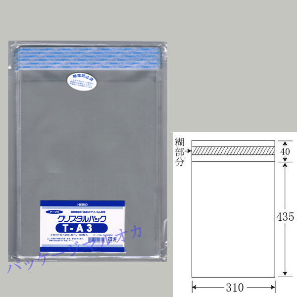 “テープ付” OPPクリスタルパック T-A3 (310×435) OPP袋 100枚