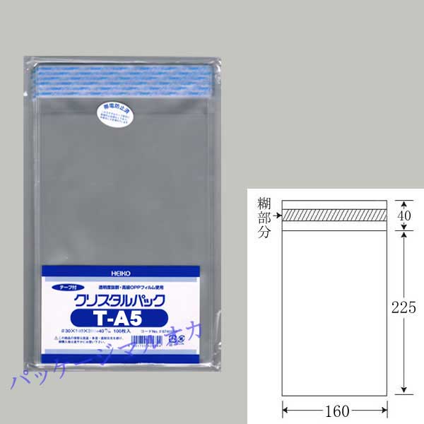 【ゆうパケット対象】“テープ付” OPPクリスタルパック T-A5 (160×225) OPP袋 100枚 (1個口:3点まで)