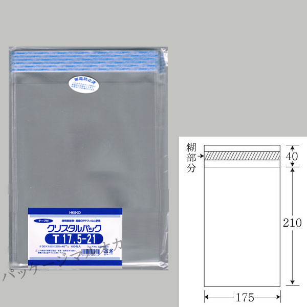 【直送/代引不可】“テープ付” OPPクリスタルパック T17.5-21 OPP袋 5000枚