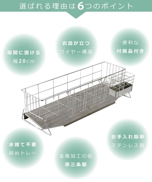 水切りラック 幅20cm シンクサイド スペース水切り スリム ステンレス ( 日本製 燕三条 カトラリーポケット付き 水切りカゴ 水切りかご 水切りラック ステンレス 水切りラック 大容量)