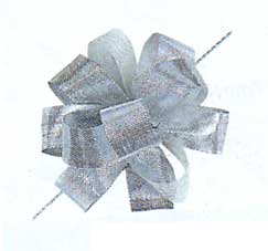 リボンを切って両端からリボンの真中の紐を引くときれいな花が出来るギフトリボンです。