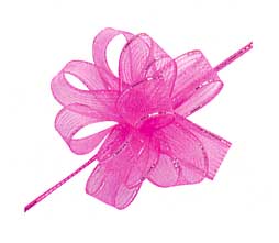 リボンを1m〜1.5m切って両端からリボンの真中の紐を引くときれいな花が出来ます。