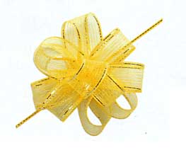 リボンを切って両端からリボンの真中の紐を引くときれいな花が出来ます。