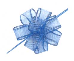 リボンを切って両端からリボンの真中の紐を引くときれいな花が出来ます。