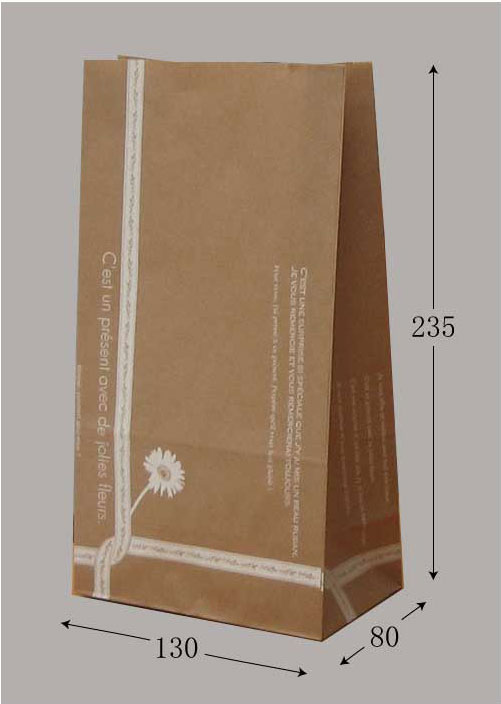 多目的に使えるテイクアウト紙袋で未晒(茶色)に洋風の花柄のかわいい角底袋です。