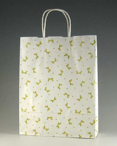 最も一般的な紙袋です、廉価で柄やサイズのバリエーションも豊富です、手紐は丸紐です。