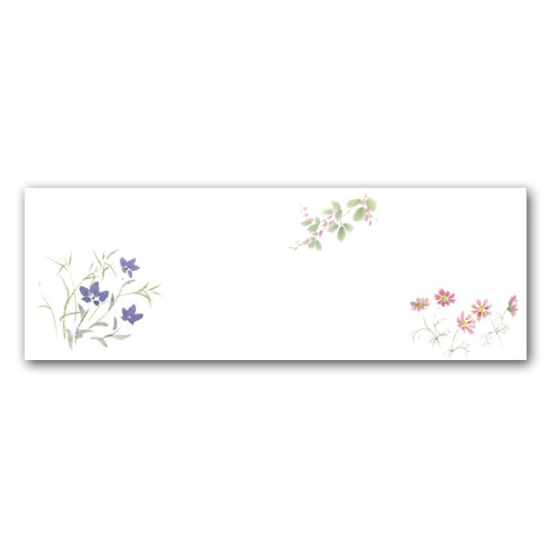 無蛍光和紙を使用した、敷紙やお献立、掛紙、お品書き等、色々なアレンジが楽しめ、四季折々に幅広く演出頂けます。ききょう、はぎ、コスモスの絵柄です。