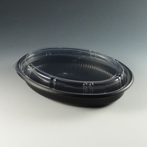 優れた耐熱性と断熱性、軽量でありながら上質感のある質感と深絞り形状、透明度の高い蓋で煮込み系メニューを中心に、さまざまな本格メニューの美味しさをそのままテーブルへ運べる最新容器です。耐熱温度は130℃(本体)です。
