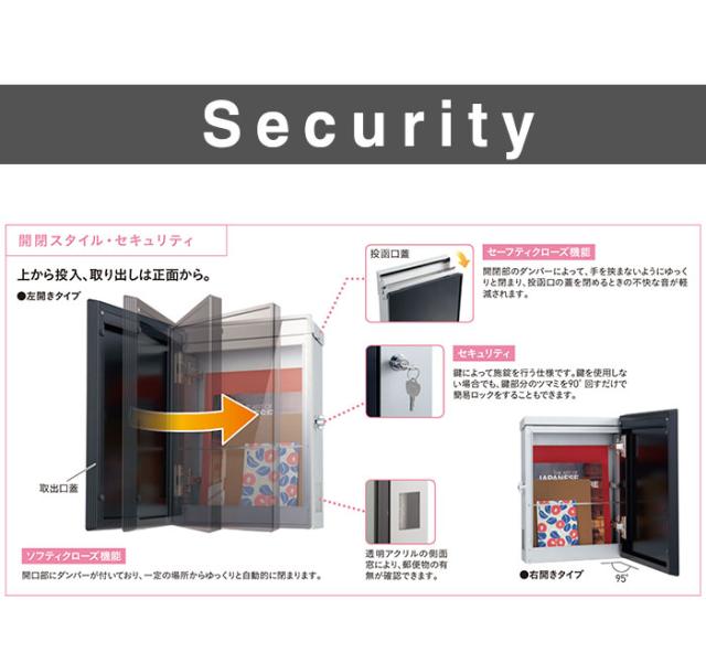 開閉部のダンパーによって、手を挟まないようにゆっくりと閉まり、投函口のふたを閉める時の不快な音が軽減されます