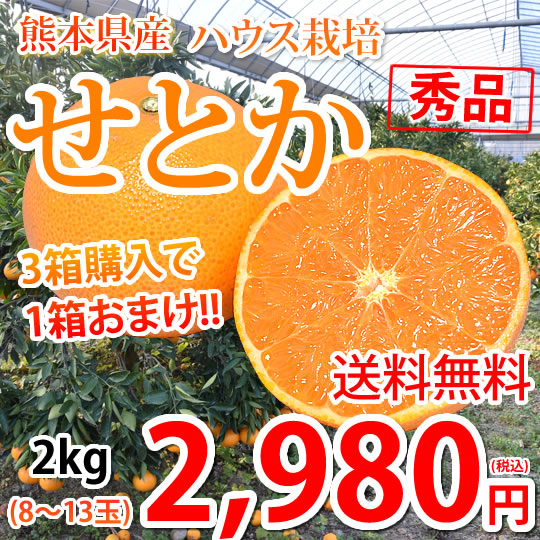 せとか みかん 送料無料 ハウス栽培 秀品 2kg 3箱購入で1箱おまけ 希少品種 熊本県産 蜜柑 清見 アンコール マーコット