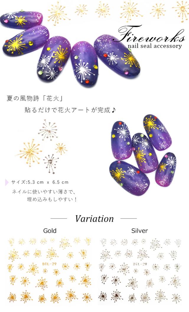 花火ネイルシール [ゴールド / シルバー]ネイルアート 夏 夜空 ネイルシール サマーデザイン