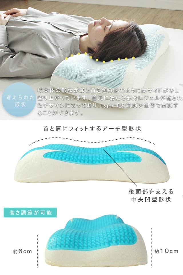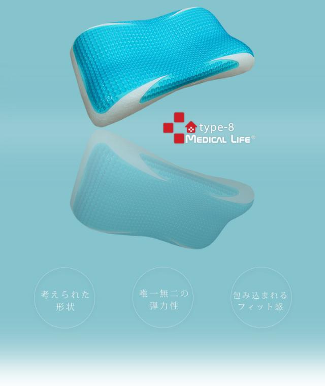 メディカルライフ ピロー type-8 ジェル枕 ジェルピロー 枕 まくら 高反発 安眠 肩こり メモリージェル