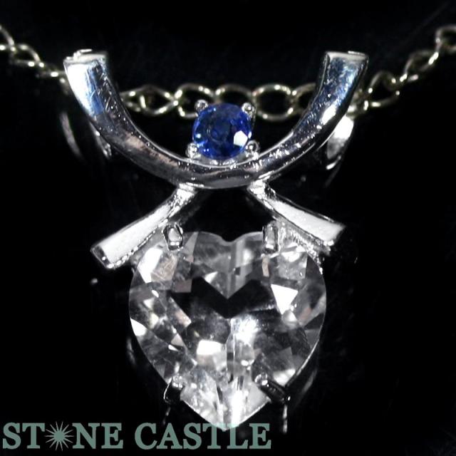☆高品質☆【天然石 ペンダント】ハーキマーダイヤモンド ハート型 ブリリアントカット (ブルーサファイア付) (約10mm) パワーストーン