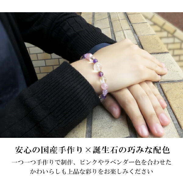 誕生石を取り入れたオリジナルブレスレット。2月の誕生石は女性の魅力を引き立てる、艶やかな紫色のアメジスト。