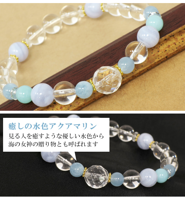 誕生石 3月 アクアマリン 藍玉 ブレスレット レディース 天然石 パワーストーン 数珠ブレスレット