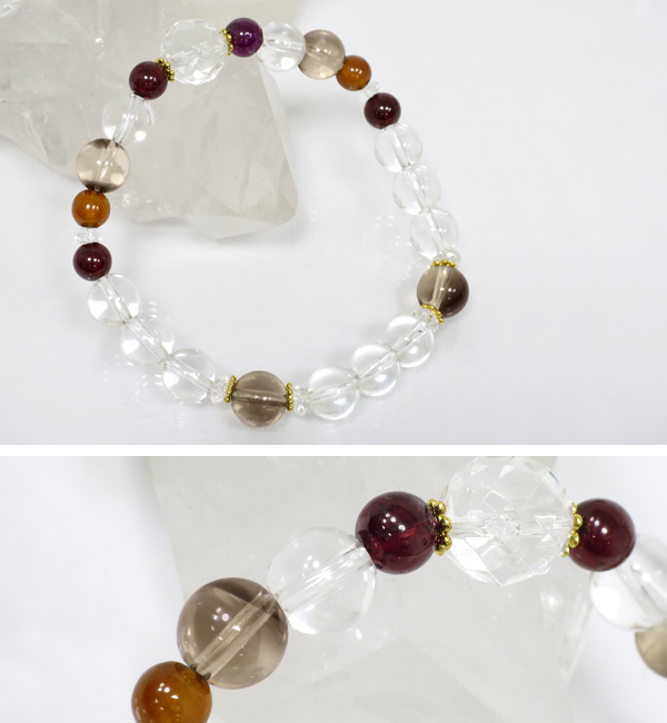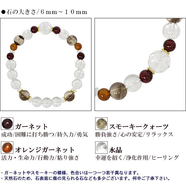 誕生石 1月 ガーネット ブレスレット レディース 天然石 パワーストーン アクセサリー オレンジガーネット ヘソナイト スモーキー 水晶 数珠ブレスレット