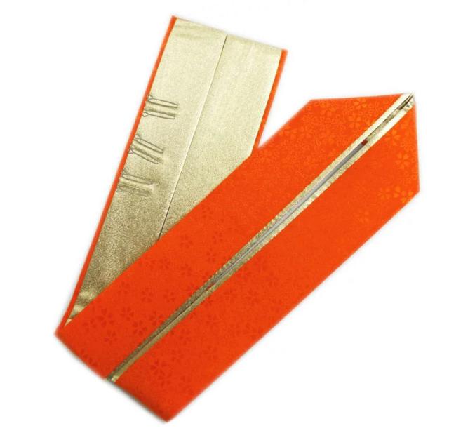 重ね衿 伊達襟 小桜地紋入り 正絹 2色使い オレンジ色金 振袖 成人式 卒業式 袴 はかま 着物 橙色