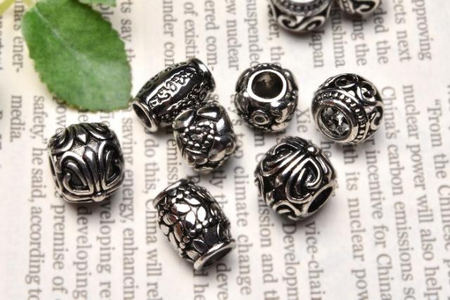 【選べる10種類】 銀古美 大穴ロンデル メタルビーズ(ステンレス製)一粒売り _KZ103