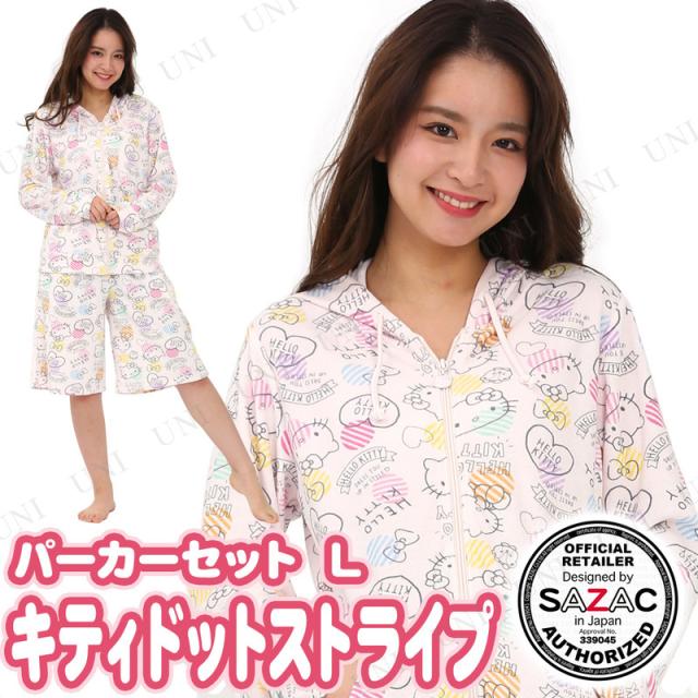 SAZAC(サザック) キティドットストライプパーカーセット ピンク L サンリオ ハローキティ ルームウェア レディースファッション レディスL 女性 長袖パーカー ひざ丈パンツ パイル生地