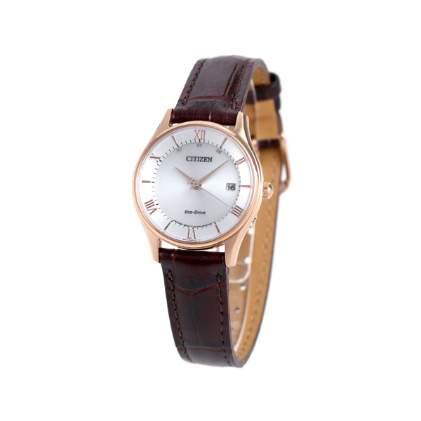 正規品 7年保証キャンペーン 送料無料 シチズン エコ・ドライブ電波時計 薄型シリーズ 28mm 電波ソーラー レディース 腕時計 ES0002-06A CITIZEN アナログ シルバー×ダークブラウン 革ベルト ◆シチズンコレクションより、デイト付きのモデルが登場。金属のような質感の美しいシンプルな文字盤と見返しリング、薄型のケースはそのままに電波受信機能を搭載。さらに従来の薄型エコ・ドライブシリーズにはなかった日付表示を追加し、さらに使いやすく、ハイスペック化しています。幅広い年代の方に似合うシンプルなデザインも魅力。誕生日や記念日、母の日や父の日といった、特別な日のギフトにも、日常使いにもおすすめです。 発売日:2018年2月発売