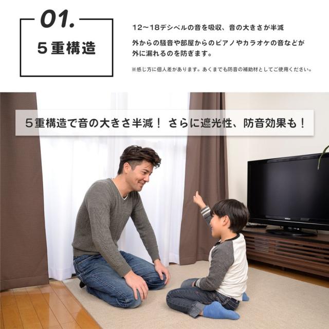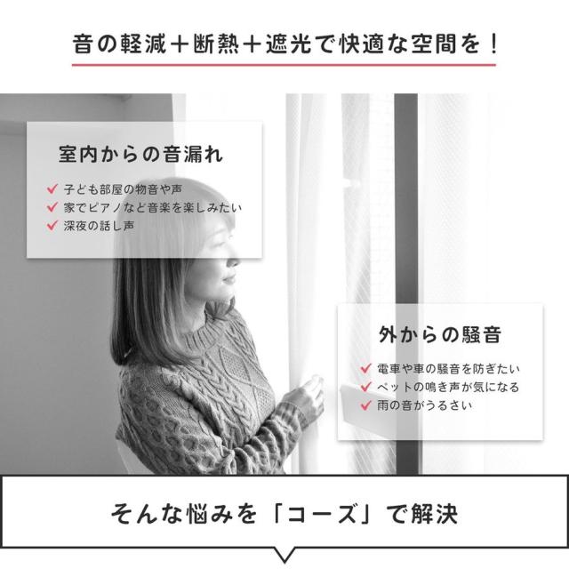 遮光・防音カーテン 5層構造コーズ 幅110cm×丈178cm 1枚 断熱 遮音 窓 防音対策 完全遮光 遮音カーテン 既製