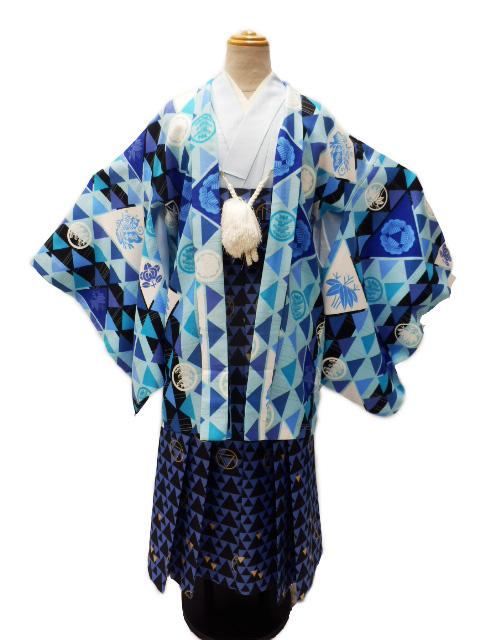 【1月限定割引】 往復送料無料 全部揃って安心 レンタル 小学生 卒業式 袴 卒業式袴セット 男児 紫 ブルー紋付 男の子 小学校 卒業式 着物 着物 紫no8
