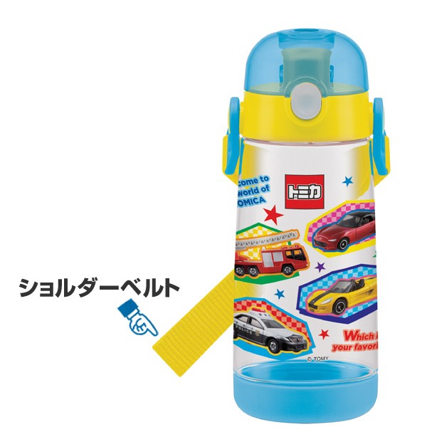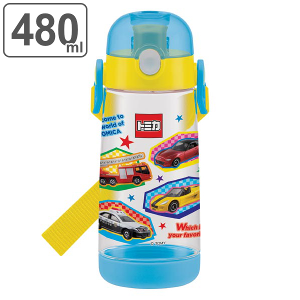 水筒 子供 トミカ 直飲み ワンプッシュボトル プラスチック製 480ml ( 軽量 プラスチック 子供用水筒 TOMICA ダイレクトボトル マグボトル すいとう キャラクター 透明 クリア 子ども 子供用 子ども用 自動車 車 乗り物 )