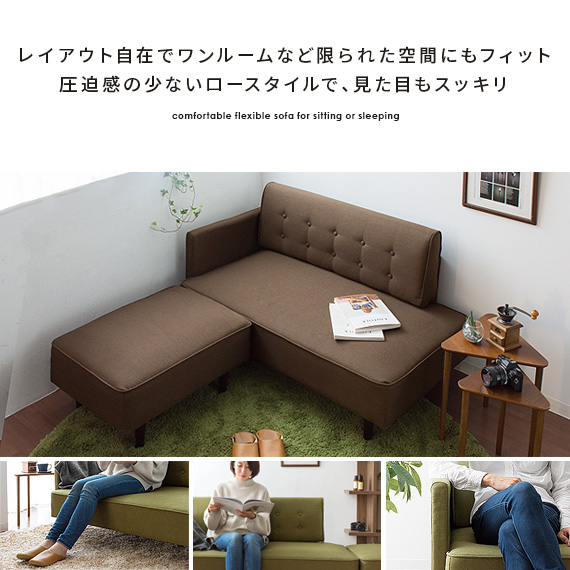 ソファ ソファー 2人掛け ローソファー 北欧 ソファベッド おしゃれ かわいい 3人掛け 緑 グリーン ポケットコイル カウチソファ コーナーソファ カフェ 家具 ミッドセンチュリー 西海岸 シンプル オットマン付きカウチソファ FREDY(フレディ)